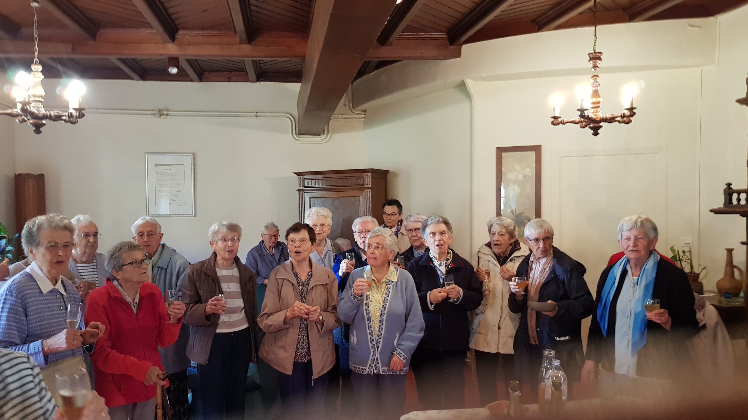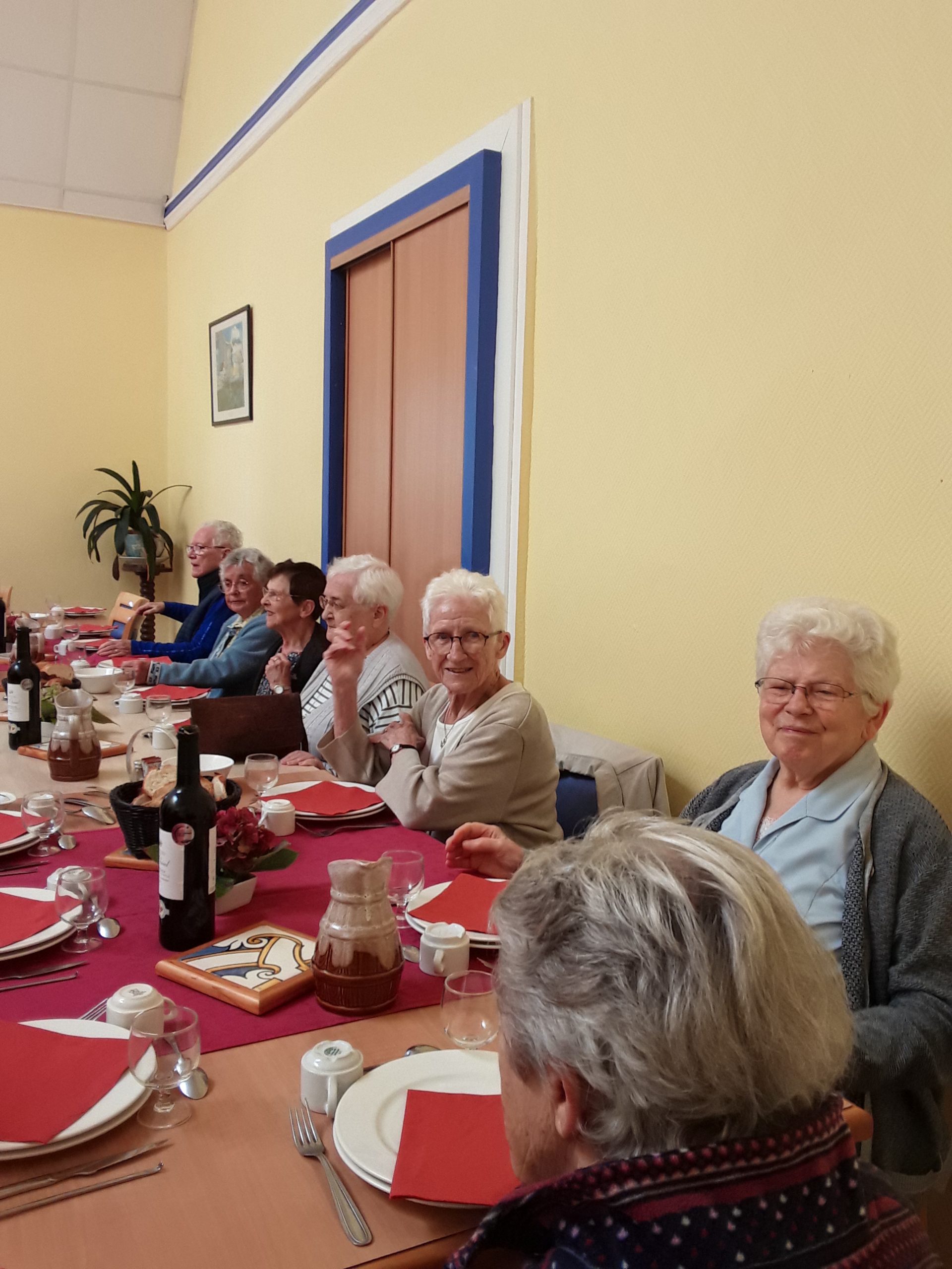 Les verres s’entrechoquent… sans se briser… Philo, Provinciale, visiblement heureuse d’être là au milieu de ses sœurs, adresse au groupe quelques mots fraternels, qui sont tout un programme de vie pour les années qui restent à vivre ! La photo de groupe s’impose !
