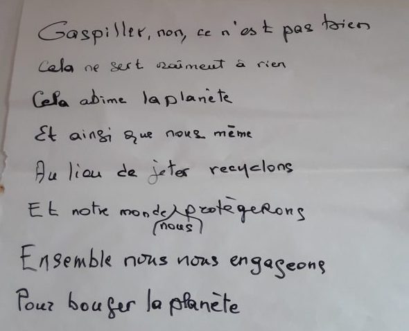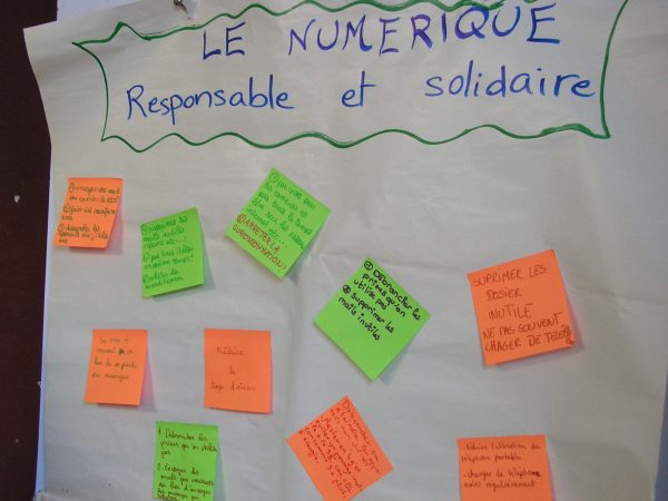 Autour de 4 thèmes qui leur ont été proposés (les espaces verts, le gaspillage, le consumérisme, le téléphone portable), ils ont pu analyser leur comportement, en mesurer l’impact sur l’environnement, sur d’autres populations et pris l’engagement d’avoir un comportement eco-responsable au quotidien, au travers des solutions qu’ils ont suggérées.