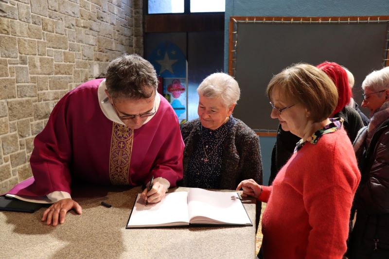 Restait encore un point important : signer le registre ! c’est avec le sourire qu’Anne, provinciale, célébrant, formatrices, associés, membres de sa famille exécutèrent cette formalité…