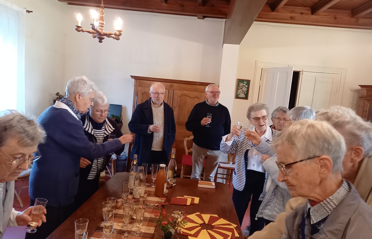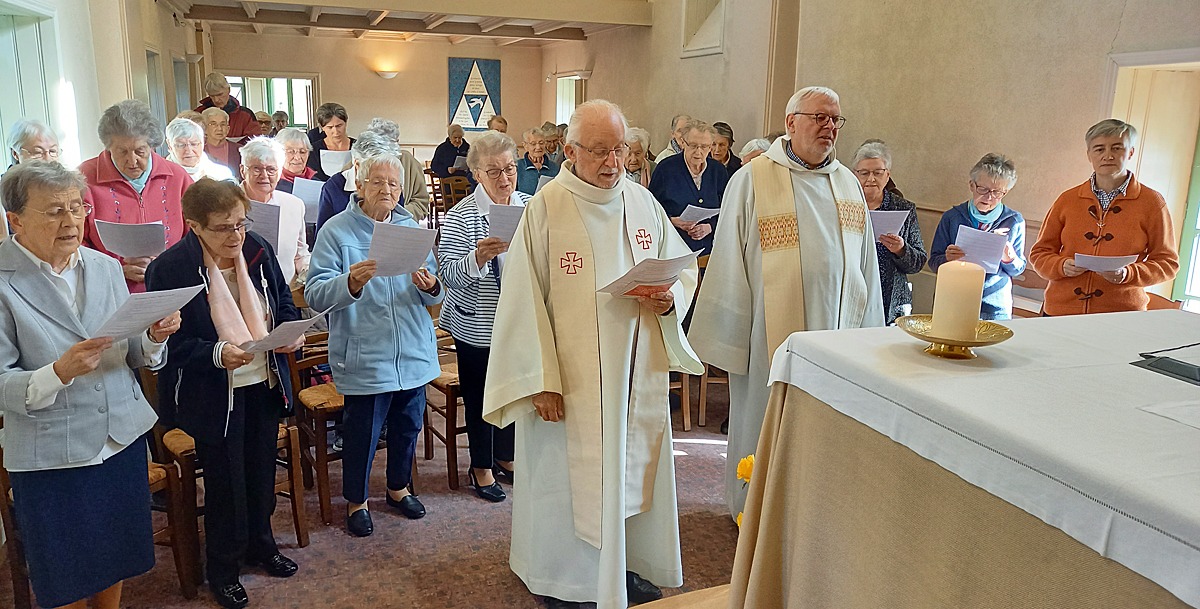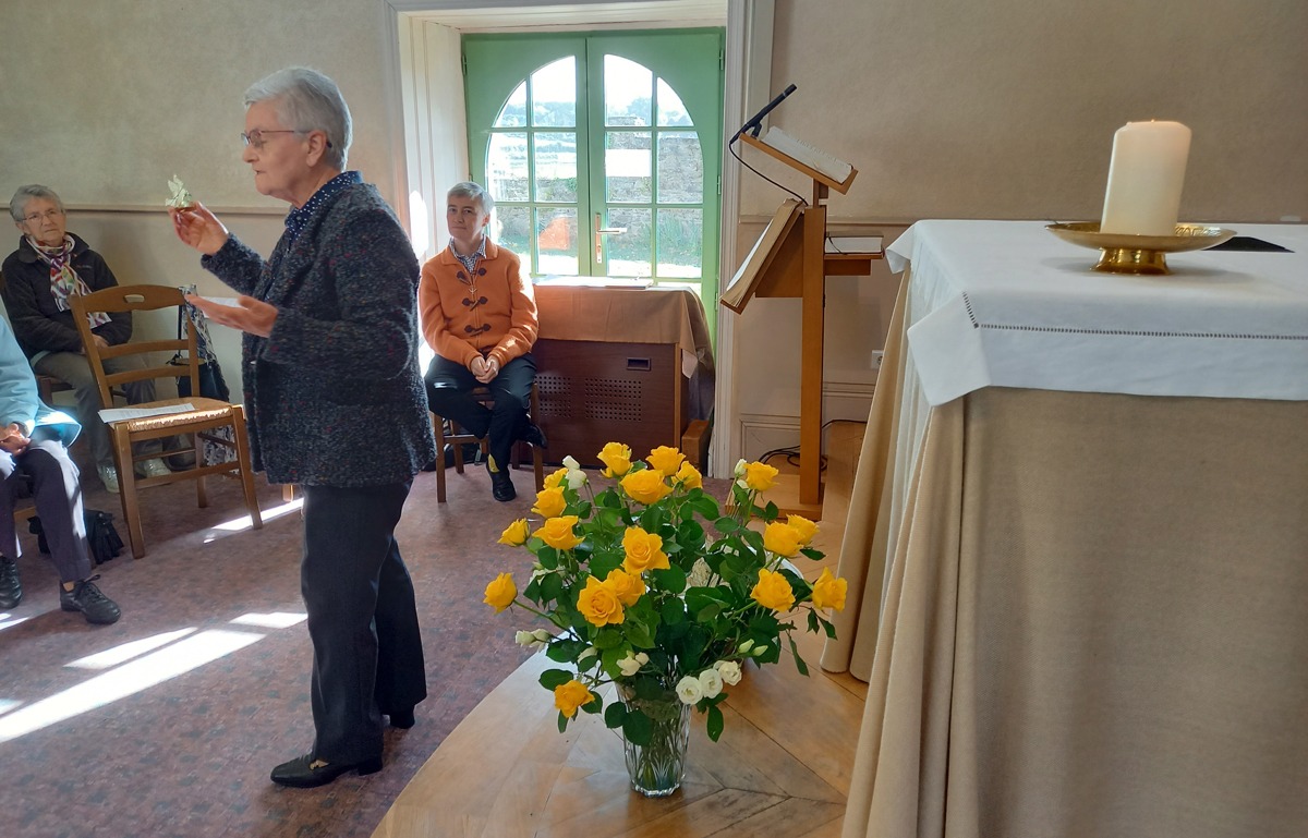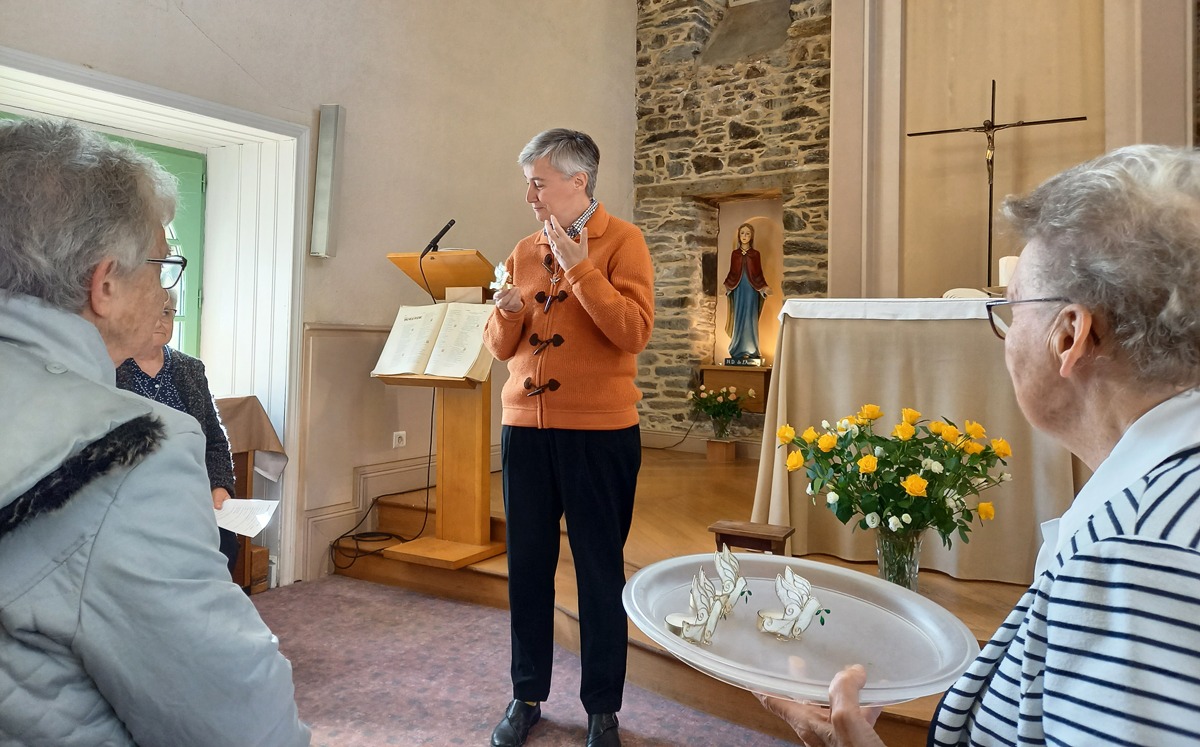 Simplicité et joie ont marqué ces journées de même que notre fête du jubilé, nous, sœurs de la Province France-Belgique de la Congrégation des Filles du Saint-Esprit, en nommant toutes celles qui étaient des nôtres, il y a 60 ans ! -celles qui n’ont pas pu venir, celles qui ont réembarqué autrement et celles qui ont déjà atteint l’autre Rive-. A l’issue de l’eucharistie, Ann, notre supérieure générale nous a envoyées vers nos communautés, nos pays. La colombe de la paix reçue de notre Provinciale nous rappelait quel souffle nous habite et nous conduit !