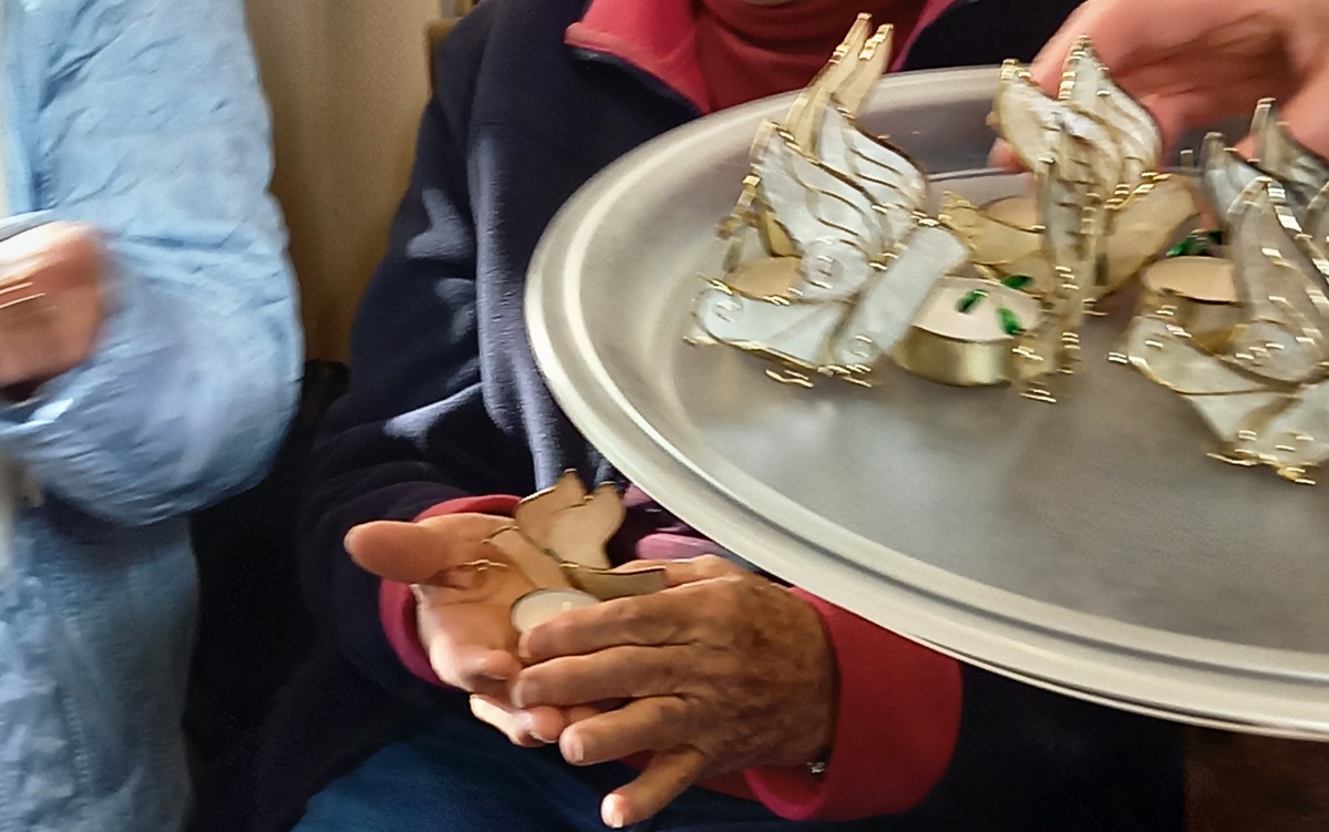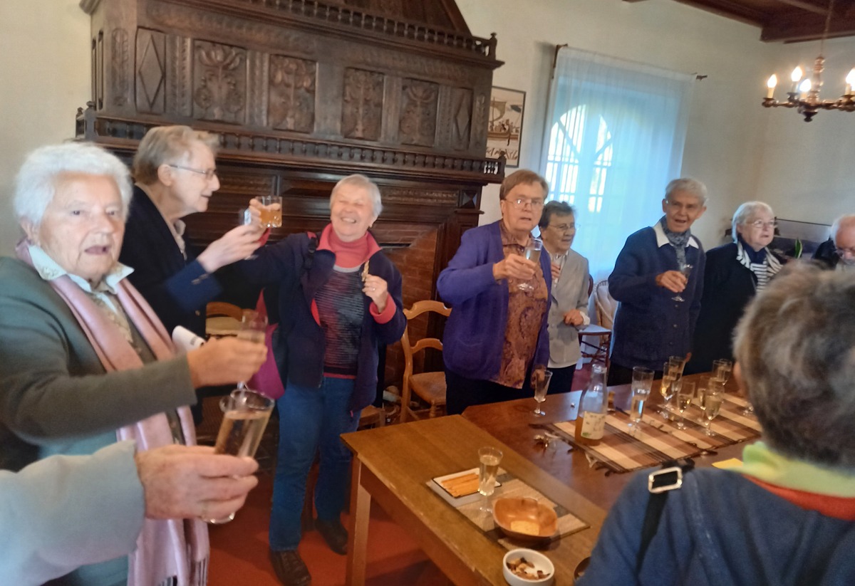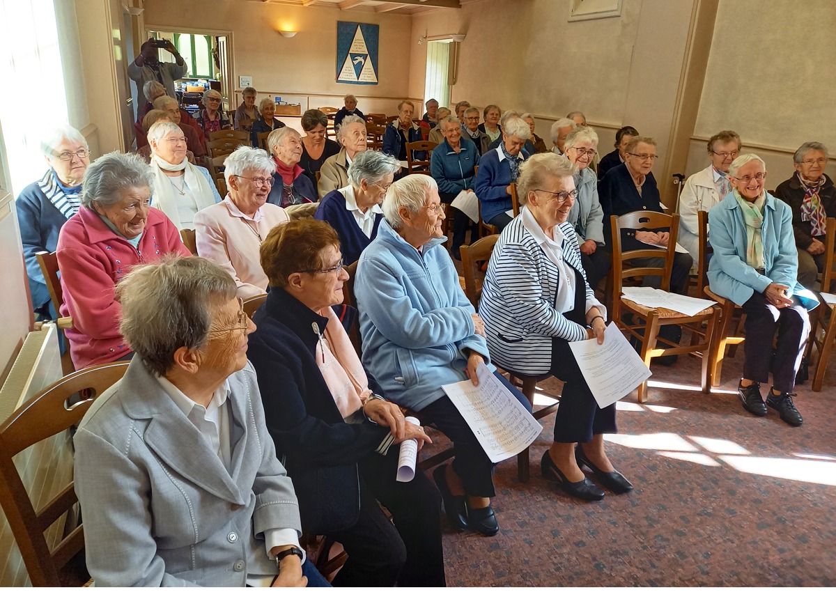 Simplicité et joie ont marqué ces journées de même que notre fête du jubilé, nous, sœurs de la Province France-Belgique de la Congrégation des Filles du Saint-Esprit, en nommant toutes celles qui étaient des nôtres, il y a 60 ans ! -celles qui n’ont pas pu venir, celles qui ont réembarqué autrement et celles qui ont déjà atteint l’autre Rive-. A l’issue de l’eucharistie, Ann, notre supérieure générale nous a envoyées vers nos communautés, nos pays. La colombe de la paix reçue de notre Provinciale nous rappelait quel souffle nous habite et nous conduit !