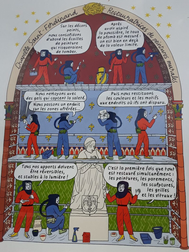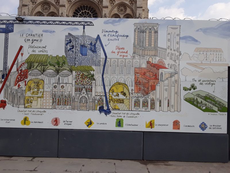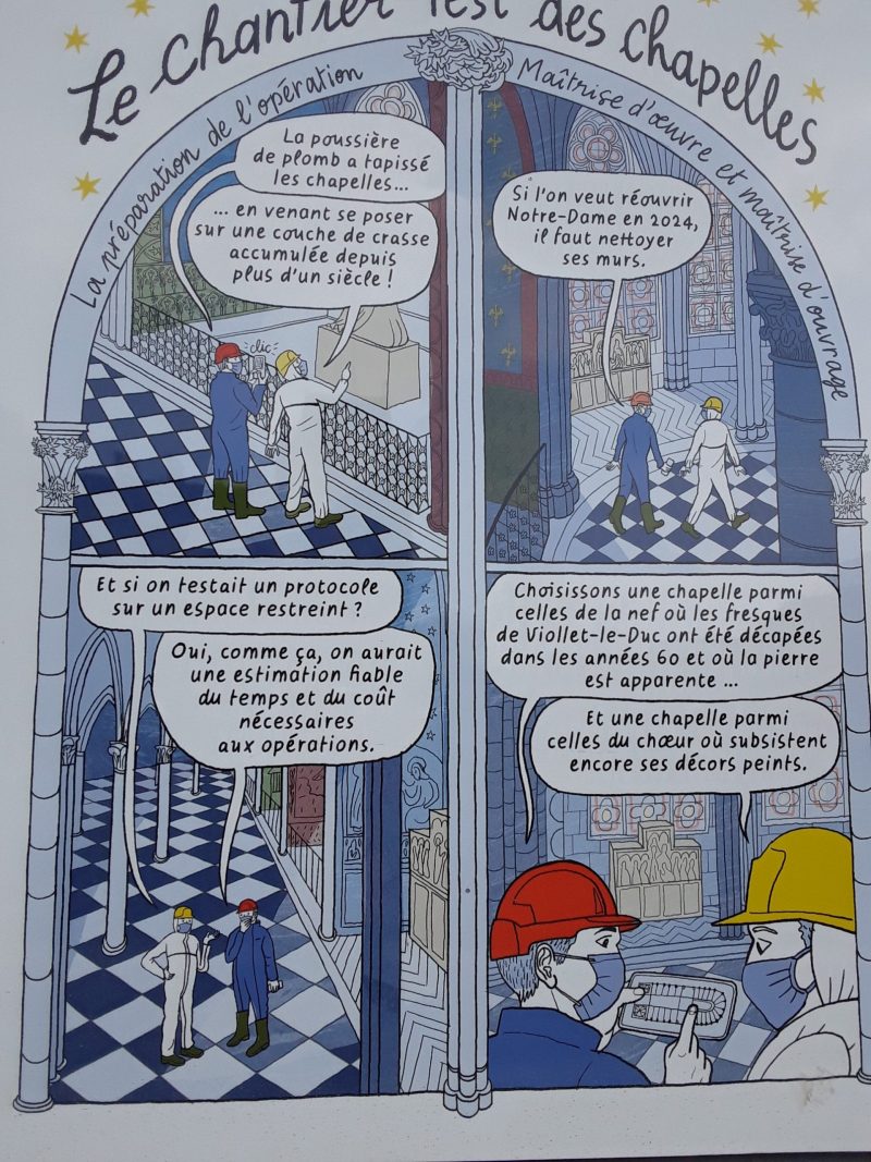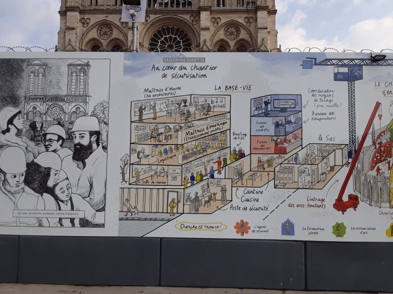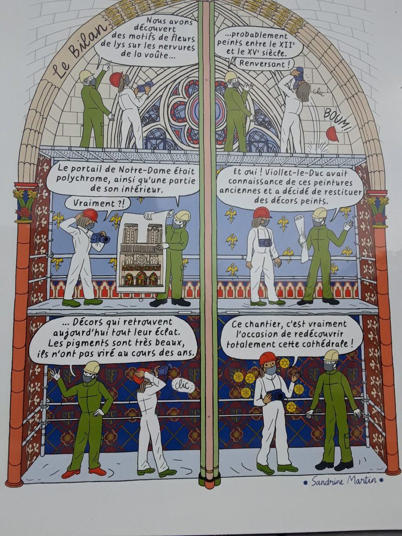 Juliette Houdemond nous invite à suivre le déroulement de la reconstruction de Notre-Dame de Paris sous forme de bande dessinée