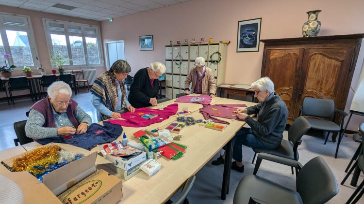 Depuis quelques années, la mode est de sortir les pulls de NOËL appelés par tout le monde désormais « pulls moches » ! Et si nous avions un « pull moche » nous aussi ? l’idée fait son chemin. Un nouvel atelier se crée : chacune apporte un pull qu’elle va décorer à son gré et selon son inspiration : (tout le monde est dans le coup : sœurs et salariés), à qui aura « le plus beau pull moche » ?
