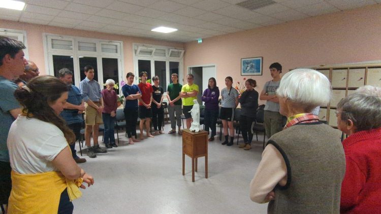 Il est 22 heures… Il est temps d’aller se coucher et de rêver de cette belle soirée, pleine de jeunesse, de vie, d’avenir et nous terminons par un chant à la Vierge puis, nous les laissons s’installer pour la nuit.