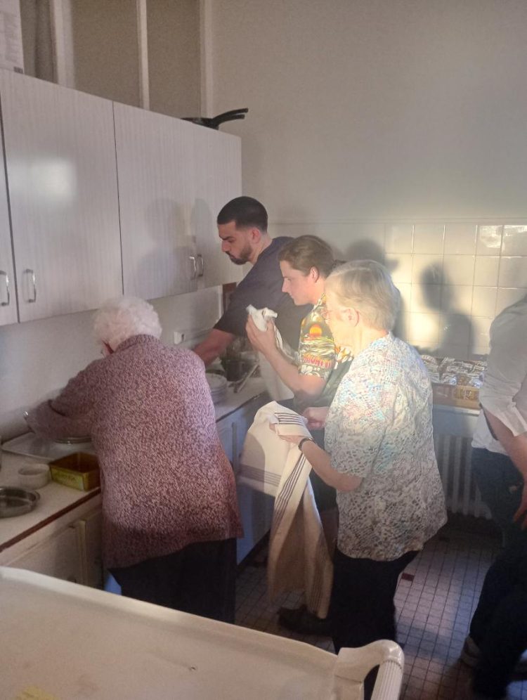 Après le repas, ils débarrassent tables et chaises, font la vaisselle avec entrain et installent la salle pour une veillée avec nous…