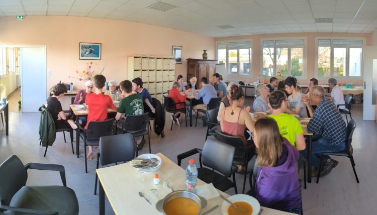 Il est l’heure de dîner : par table de six nous nous mélangeons à eux, deux sœurs par table et tout en dégustant cette bonne soupe, nous faisons plus ample connaissance avec nos invités.