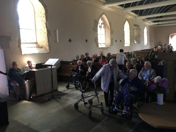 Après la pause repas dans la salle des fêtes de Taden, nous rejoignons l’église du village en passant devant le Petit Bon Espoir, maison noble mise à disposition des Sœurs de la Communauté de Plérin par les époux de la Garaye afin qu’elles puissent y tenir une école, visiter et soigner les malades. Nous apprenons que les Sœurs ouvrirent aussi leur maison pour l’accueil de retraites spirituelles. Ce fut la première communauté fondée en dehors de Plérin. Elle fut dispersée par la Révolution Française en 1793. Les Sœurs ne revinrent à Taden qu’en 1864, jusqu’en 1951. Dans la belle église de Taden, près de laquelle reposent le Comte et la Comtesse, nous évoquons ces Sœurs, qui ont prié dans ce lieu pendant 150 ans.
