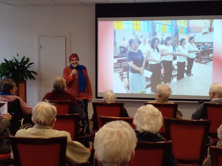 Ce jeudi 5 février après-midi, la salle Marie Balavenne, salle de communauté, est pleine : les sœurs aînées s’y retrouvent pour leur réunion mensuelle. Après un temps d’échanges et d’informations, nous accueillons Sœur Françoise Prigent, Francy, pour qu’elle nous parle de ce qu’elle a vécu au Pérou.