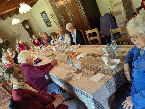 Nous participons à la messe -en latin- avant le pique-nique convivial dans une belle salle de l’Abbaye.