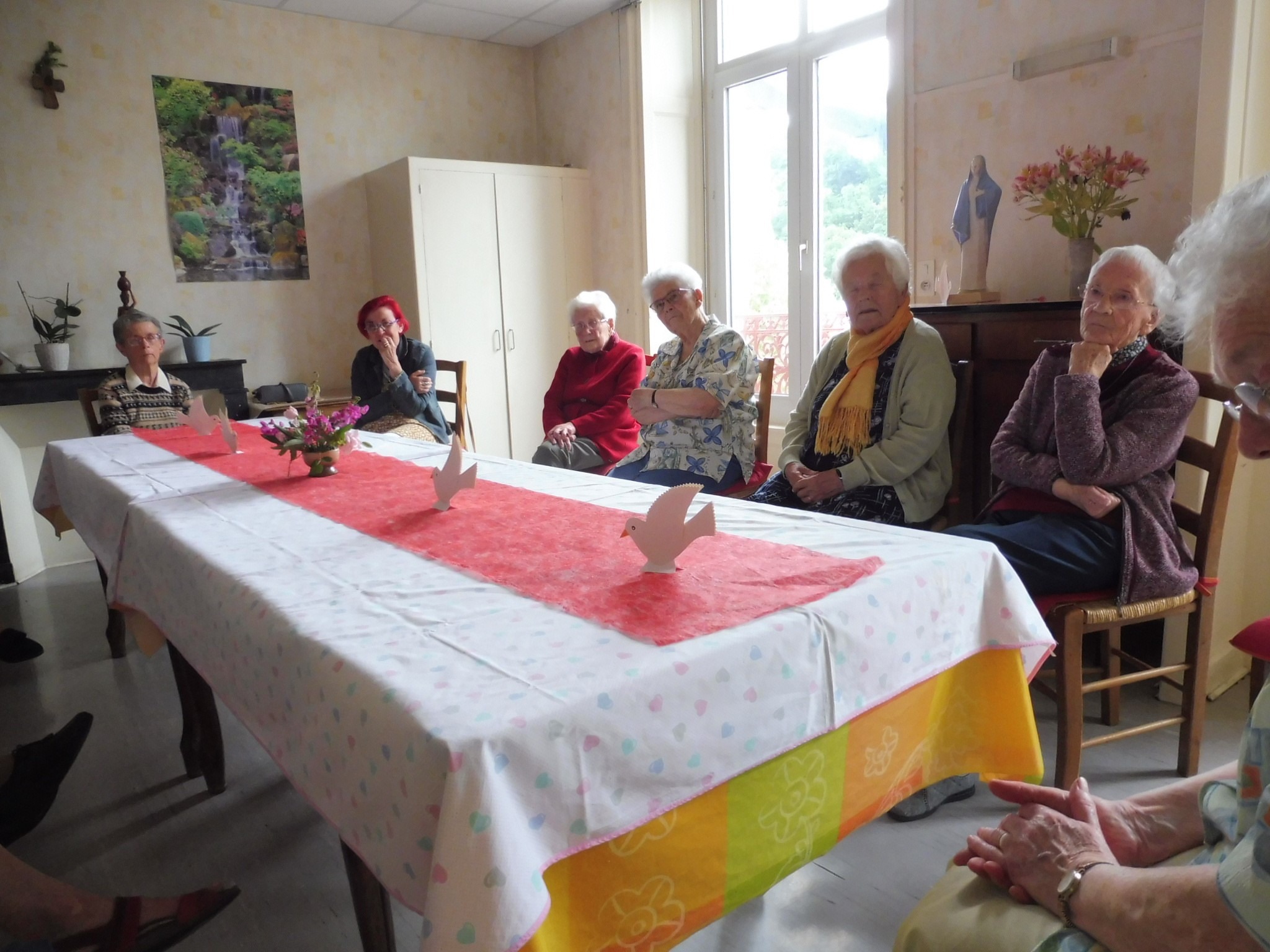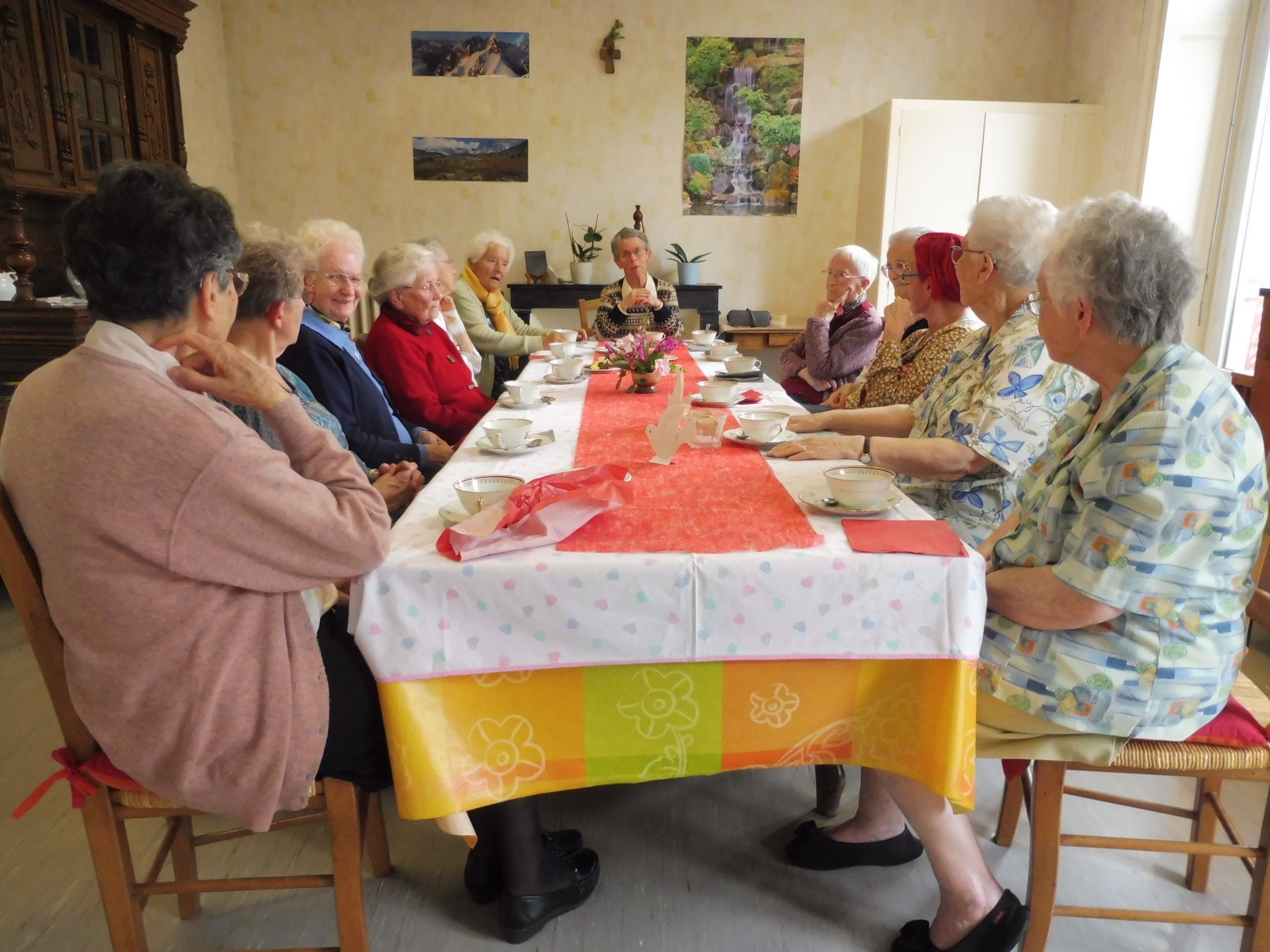 Associés, laïque consacrée, religieuses, nous nous sommes présentées les unes aux autres, à notre gré. Moment de découverte, d’enrichissements mutuels… Lieux d’origine, engagements d’hier et d’aujourd’hui, recherche de vie spirituelle, intérêts poursuivis, personnes qui nous ont marquées, nouvelles structures dans la cité pour les « anciens » et les personnes à mobilité réduite… l’évocation des réalités vécues, faite avec simplicité, suscite déjà une estime réciproque et fait éclore des liens vitaux…
