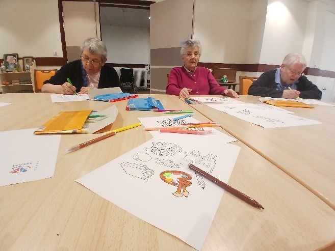 C’est avec beaucoup de sérieux, guidées par Solen — aux doigts de fée — que nous nous sommes mises à peindre au pastel ou à la gouache, et que nous nous sommes appliquées à réaliser un « petit chef-d’œuvre » (à notre avis !). Pour plusieurs d’entre nous, cela faisait une éternité qu’elles n’avaient pas touché un pinceau ! Mais il reste tout de même de beaux restes… »