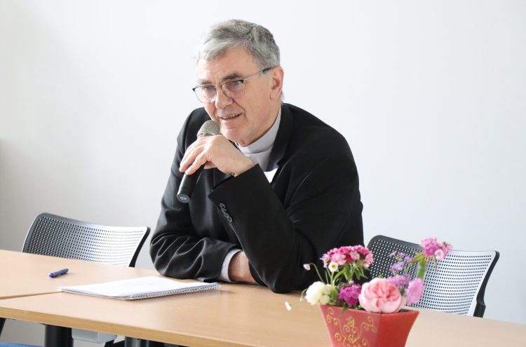 Nous avons été choisis – un choix singulier – pour les œuvres de l’Esprit. Notre libre réponse nous engage à « prendre soin des personnes », à « soutenir le dynamisme de chacun dans son propre cheminement » : telle était l’attitude profonde de Jésus… Cet appel singulier se déploie au cœur de l’Église qui se reçoit du Christ. Une Église dont la dimension instituée a à tenir compte des charismes particuliers : dons reçus, diversifiés, pour le bien du Corps entier… Cet appel de Dieu nous renouvelle et nous transforme aujourd’hui, nous invite à la conversion qui comporte sa part d’incertitude et de joie… Invités à « vivre le temps présent tel qu’il est », nos Instituts vivent une dimension internationale souligne Mgr Moutel ; celle-ci doit nous rappeler que la mission donnée par le Christ est « pour les 153 poissons », c’est-à-dire l’univers entier. Ayant élargi notre regard, Mgr attire notre attention sur l’essentiel : vivre du Christ, écouter sa parole, servir les plus petits.