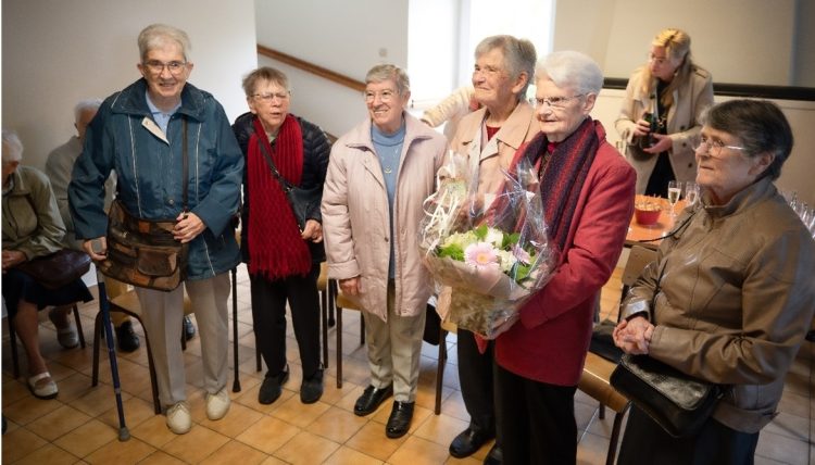 En l’absence de Monsieur Le Maire, c’est Madame Gavaud, son adjointe, accompagnée de plusieurs élus, qui a accueilli les sœurs et nombre de leurs amis dans une salle municipale. Une prise de parole, un verre de l’au-revoir, la remise de la médaille de la ville, un magnifique bouquet : tous ces gestes chaleureux pour remercier les sœurs des nombreux services rendus à la population, y compris dans des moments difficiles de l’application de la loi 1905 ou la traversée de deux guerres mondiales. Un merci spécifique pour leur investissement dans des services municipaux : permanences à la bibliothèque, participation active et joyeuse à la kermesse des deux écoles, au club du 3ème âge ….