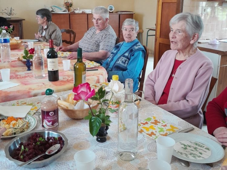 Repas convivial en famille Filles du Saint Esprit, à la communauté de Loyat.