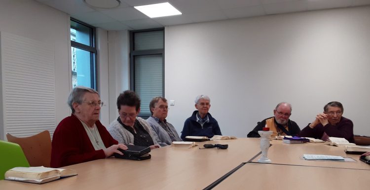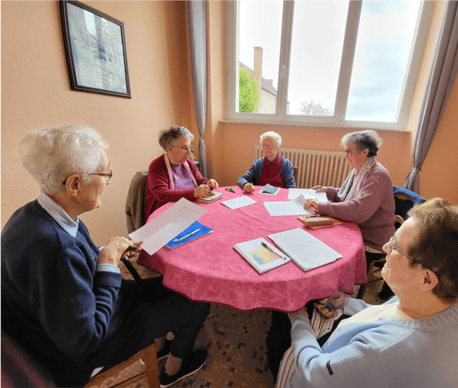 Par groupes de cinq ou six, pendant 1h30, nous avons repris la lettre du Conseil Général datée du 20 novembre 2023. Chacune était invitée à s’exprimer librement. L’heure n’était pas au débat mais à l’accueil et à l’écoute attentive des réactions et des points de vue de chacune, sans le souci d’une mise en commun. À la fin de sa réflexion, chaque groupe pouvait écrire sur une feuille ce qu’il désirait transmettre au conseil provincial.
