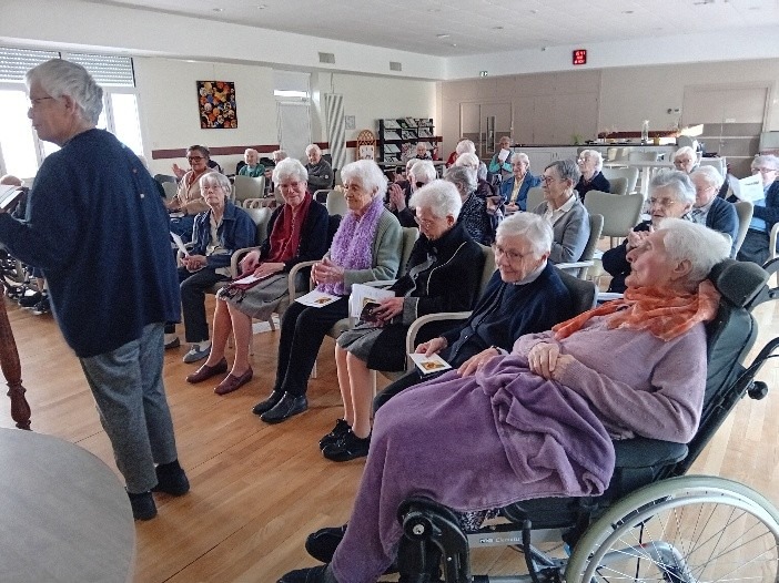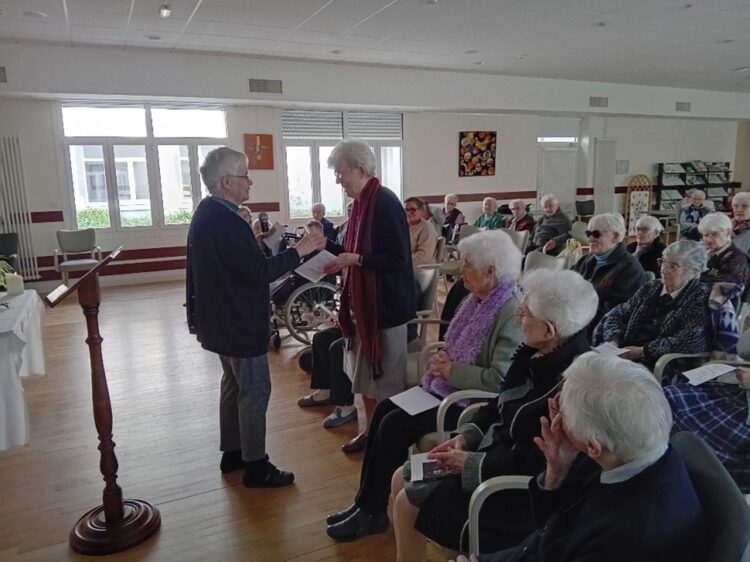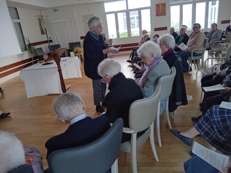 Nous nous sommes réunies le mardi 18 novembre à 15h pour entourer Sœurs Georgette Le Grand, Élisabeth Arhuro, Jeannette Le Berre, Jeanne Rollo et Marie-Pierre Bompoil lors de notre messe hebdomadaire durant laquelle Sœur Anne-Geneviève a pu remettre leurs obédiences.