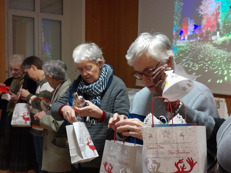 C’est à l’occasion de notre réunion communautaire, le jeudi 19 décembre, que nos invitées nous ont rejointes. Avec beaucoup de joie, elles ont reçu des sœurs aînées leurs cadeaux : des décorations de Noël « faites maison », boules scintillantes et anges colorés. Nous avons ensuite partager le goûter et les chocolats offerts par la communauté d’Yffiniac, pour le plus grand bonheur de toutes !