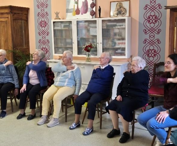 Nathalie et moi, Peggy, n’étions pas certaines que les sœurs nous suivraient dans cette proposition d’animation… et bien si ! Et même en mieux ! Leur enthousiasme et leur participation nous ont ravies, rendant ce moment encore plus joyeux.