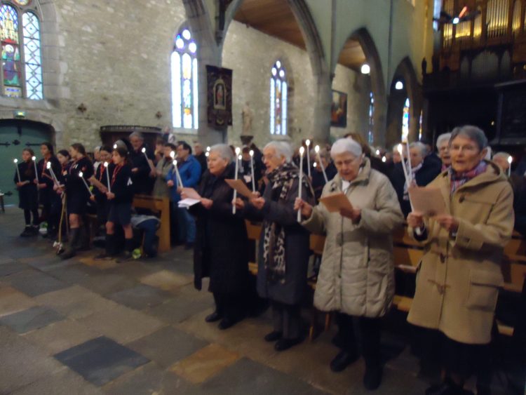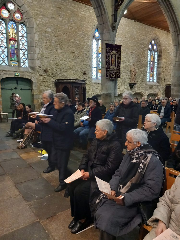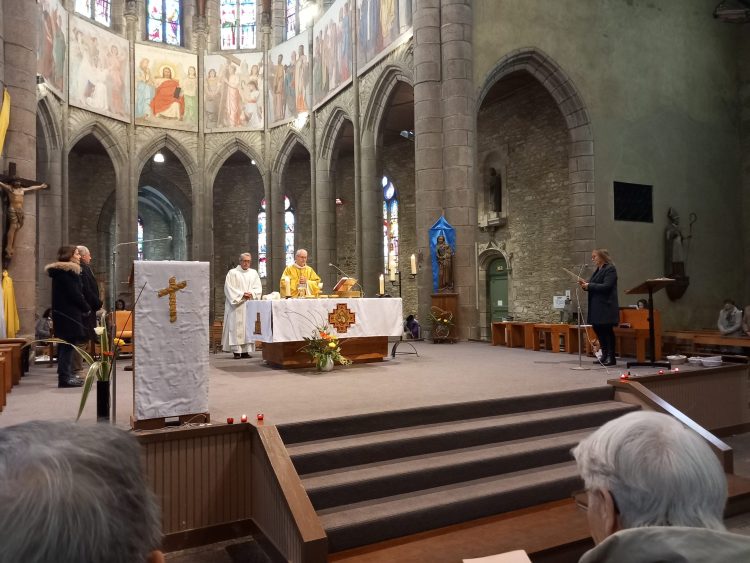 Une vingtaine de Filles du Saint-Esprit se sont retrouvées à l’église Saint Houardon de Landerneau le dimanche 2 février 2025, fête de la vie consacrée. Unies au peuple rassemblé ce dimanche, elles ont rendu grâce pour l’œuvre accomplie pendant les 195 années de présence de la Congrégation au pays de Landerneau, ce lieu où ont vécu quelque 380 Filles du Saint-Esprit. Dans l’assemblée intergénérationnelle présidée par l’abbé Sébastien Guiziou, vicaire général, se distinguaient un groupe de « Guides de France » et une représentation du conseil municipal : c’est en effet la municipalité de Landerneau qui a appelé les Filles du Saint-Esprit, en 1829, pour assurer le service des pauvres au Bureau de Bienfaisance et quelques années plus tard, lui confiait l’École communale de filles !