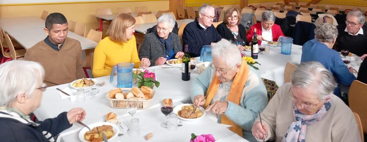 Après une célébration menée par le recteur de la Basilique de Sainte-Anne d’Auray, Père Gwenaël Maurey, et par Père Pierre Joubaud, supérieur de la maison Saint Joachim, nous avons partagé un goûter festif avec nos invités.