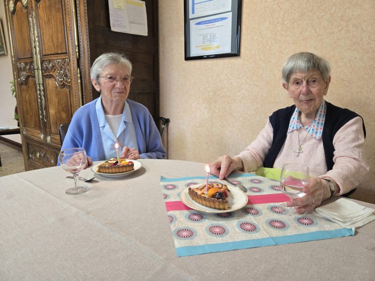 Placées en demi-cercle dans notre salle, nous chantons les Laudes devant un petit autel délicatement décoré par Malou. La prière est adaptée à notre groupe et comporte une note spéciale en moundang et en espagnol, car il y a parmi nous des anciennes du Cameroun et du Chili… L’après-midi, place à la sieste, puis à une promenade ensoleillée, enfin à des jeux de société si l’on veut, avant les vêpres que nous chantons avec les retraitantes. En effet, une retraite se déroule cette même semaine, si bien que nous avons le privilège d’avoir l’Eucharistie tous les jours, concélébrée par le Père Nicolas Guérin, nouvel aumônier de l’Ile Blanche, et le prédicateur, Mgr Rault, évêque émérite du Sahara, dans un diocèse où se trouvait l’abbaye de Tibhirine…tin,
